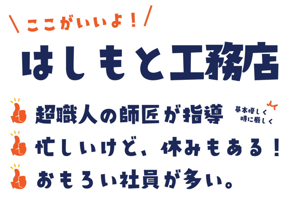 株式会社橋本工務店では左官業界の未来を担う若手職人を募集します。経験や知識がなくても問題はありません。やる気と常識があれば大丈夫です。左官職人になりたいという方はもちろん、将来稼ぎたい!という野望をお持ちの方もOK